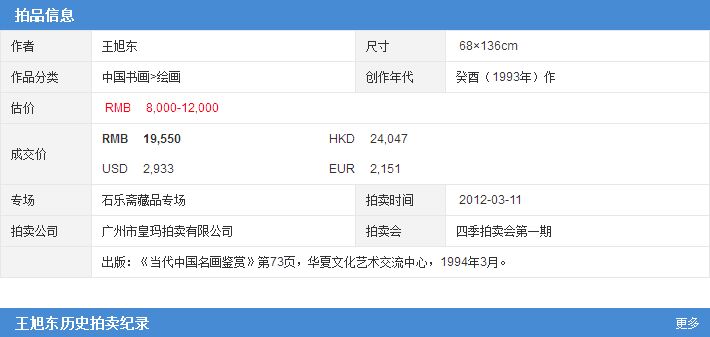 王旭东四尺泰山作品价格2012年拍卖成交19550元