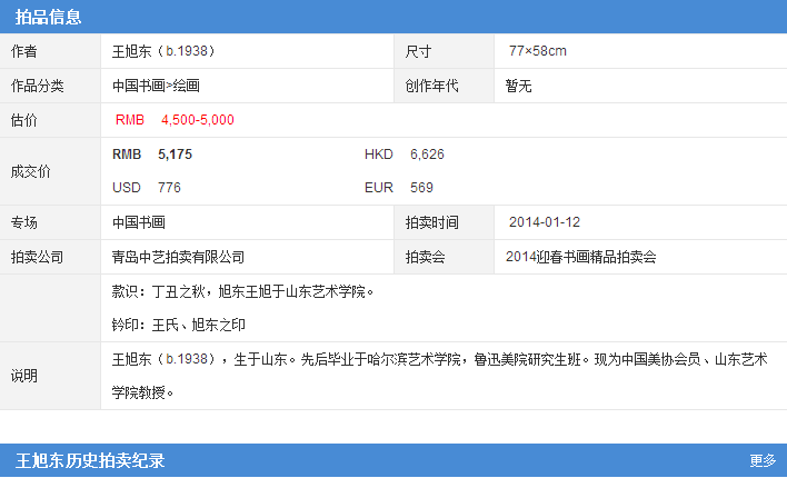 王旭东开三山水拍卖价格5175元