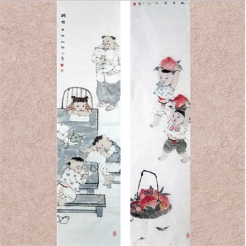 徐玉华《听写》《献寿图》 136X34cmX2 |