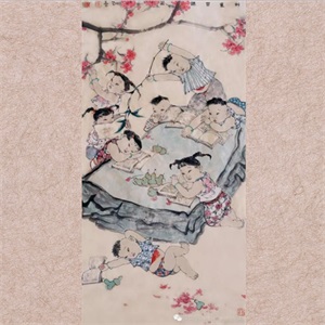 徐玉华《村童习课图》 136X68cm |