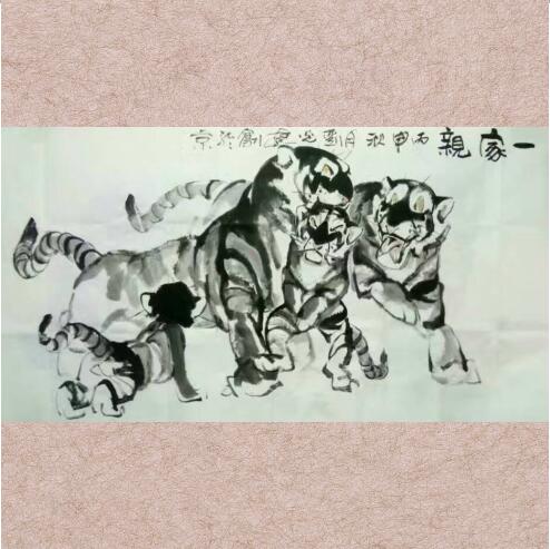 | 刘光达《一家亲》  阅览量:2180 作者:刘光达 刘光达,字啸天,男,汉族,1941年生。毕业于鲁迅美院,现居北京 ------------------------------------------------------------ 艺术职称 ------------------------------------------------------------ 一级美术师 现任关心下一代画院院长 中国写意虎研究会会长 中国国画家协会会员 中国书法美术家协会理事 中国书法艺术研究院艺术委员 中国书画印研究院常务理事 中国书画艺术家协会员 世界艺术家联合会(中国区域)理事 中国国际书画研究院研究员 中国国家博物馆画廊艺术顾问 中国工艺美术家协会会员 中国国际羲之书画院副院长 ------------------------------------------------------------ 艺术风貌 ------------------------------------------------------------ 刘光达专攻大写意“虎”,从艺六十余年,近二十年专攻大写意虎,其作品造型生动,创意新颖,笔墨苍劲,技法独特,自成画法,大气凛然,不但写意“虎”出神入化,鹰、钟馗、仕女等也别具一格 ------------------------------------------------------------ 艺术成就 ------------------------------------------------------------ 截止2006年佳作在参加国内外大型书画展荣获金、银、铜奖69枚,先后参展116次,国内外个人画展11次。入编全国书画典集98部。并在北京市和山东省威海市分别设有二个工作室及《刘光达艺术馆》。 受到国际收藏家交流协会会长郭浩满先生赞赏并收藏191幅佳作。2006年3月18日至31日在广州举办《刘光达写意虎作品展》,12月在北京《云峰画苑》举办个人画展,在中国画写意虎这个项目中确立了自己的位置,也得到了高度评价和认可。 2009年10月22日,刘光达的《啸迎春风图》被外交部门作为国礼在北京钓鱼台国宾馆赠送给前来访问的美国前副总统戈尔先生,并受到极高评价,董建华、吴建民等参加了赠送仪式。 2010年3月20日至31日,北京云峰画苑在中国农历虎年之春为刘光达先生第三次举办个人画展,也是云峰画苑该年度的第一个画展,并在香港、上海、广州云峰画苑相继展出,云峰画苑董事长郭浩满先生亲临画展发表讲话,对刘光达给予了“写意虎大师”的高度评价;至此云峰画苑在成立二十多年以来唯一的为一位当代水墨大写意画家举办了三次画展。2010年4月10日,中央电视台《鉴宝》栏目专家、国务院特贴文物鉴定专家、文化部艺术品评估委员会委员、中国书协鉴定评估委员李元茂先生为刘光达的水墨大写意虎发表评论文章,给予高度的艺术评价。2010年11月18日至27日香港云峰画苑为刘光达先生第四次举办个人精品大写意虎画展。从艺50年,先后被命名为“德艺双馨”艺术家,中国实力派画家,中国书画印(画家)百杰之一,当代中国书画收藏实力派画家,2004年度中国百家书画大师之一,2005年度百名书画名家之一,中国艺术市场最有影响力的画家等 30多个荣誉称号。 详细说明