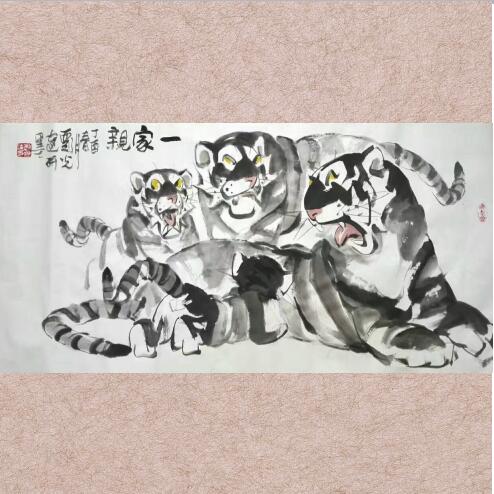 | 刘光达《一家亲》  阅览量:2152 作者:刘光达 刘光达,字啸天,男,汉族,1941年生。毕业于鲁迅美院,现居北京 ------------------------------------------------------------ 艺术职称 ------------------------------------------------------------ 一级美术师 现任关心下一代画院院长 中国写意虎研究会会长 中国国画家协会会员 中国书法美术家协会理事 中国书法艺术研究院艺术委员 中国书画印研究院常务理事 中国书画艺术家协会员 世界艺术家联合会(中国区域)理事 中国国际书画研究院研究员 中国国家博物馆画廊艺术顾问 中国工艺美术家协会会员 中国国际羲之书画院副院长 ------------------------------------------------------------ 艺术风貌 ------------------------------------------------------------ 刘光达专攻大写意“虎”,从艺六十余年,近二十年专攻大写意虎,其作品造型生动,创意新颖,笔墨苍劲,技法独特,自成画法,大气凛然,不但写意“虎”出神入化,鹰、钟馗、仕女等也别具一格 ------------------------------------------------------------ 艺术成就 ------------------------------------------------------------ 截止2006年佳作在参加国内外大型书画展荣获金、银、铜奖69枚,先后参展116次,国内外个人画展11次。入编全国书画典集98部。并在北京市和山东省威海市分别设有二个工作室及《刘光达艺术馆》。 受到国际收藏家交流协会会长郭浩满先生赞赏并收藏191幅佳作。2006年3月18日至31日在广州举办《刘光达写意虎作品展》,12月在北京《云峰画苑》举办个人画展,在中国画写意虎这个项目中确立了自己的位置,也得到了高度评价和认可。 2009年10月22日,刘光达的《啸迎春风图》被外交部门作为国礼在北京钓鱼台国宾馆赠送给前来访问的美国前副总统戈尔先生,并受到极高评价,董建华、吴建民等参加了赠送仪式。 2010年3月20日至31日,北京云峰画苑在中国农历虎年之春为刘光达先生第三次举办个人画展,也是云峰画苑该年度的第一个画展,并在香港、上海、广州云峰画苑相继展出,云峰画苑董事长郭浩满先生亲临画展发表讲话,对刘光达给予了“写意虎大师”的高度评价;至此云峰画苑在成立二十多年以来唯一的为一位当代水墨大写意画家举办了三次画展。2010年4月10日,中央电视台《鉴宝》栏目专家、国务院特贴文物鉴定专家、文化部艺术品评估委员会委员、中国书协鉴定评估委员李元茂先生为刘光达的水墨大写意虎发表评论文章,给予高度的艺术评价。2010年11月18日至27日香港云峰画苑为刘光达先生第四次举办个人精品大写意虎画展。从艺50年,先后被命名为“德艺双馨”艺术家,中国实力派画家,中国书画印(画家)百杰之一,当代中国书画收藏实力派画家,2004年度中国百家书画大师之一,2005年度百名书画名家之一,中国艺术市场最有影响力的画家等 30多个荣誉称号。 详细说明