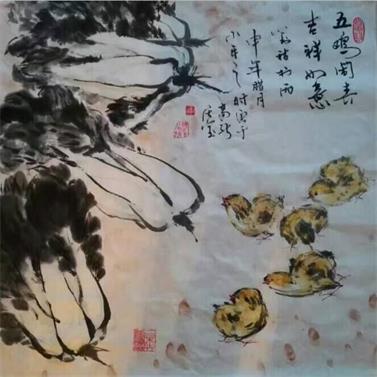 | 刘祜《五鸡闹春 吉祥如意》  阅览量:2382 作者:刘祜 -----------------------------------------------------------