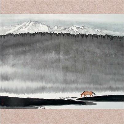 吴玉田水墨系列《饮马年河畔》 72X44cm |