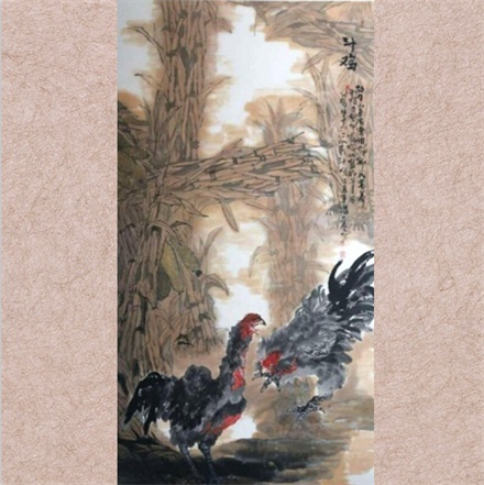 冯占奎《斗鸡》 180X97cm |
