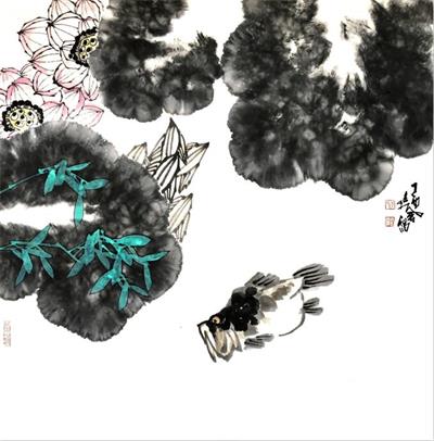 顾奇峰《写意墨彩荷系列》 68X68cm |