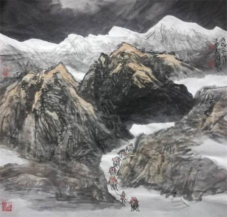 | 袁大川《驼铃》  阅览量:3100 作者:袁大川 袁大川,1968年9月生于酒泉,祖籍山东,现居北京。汉语言文学毕业。师从龙瑞、王文芳、谢永增。 现为北京画院谢永增工作室山水画家 中国铁道游击队艺术研究会副会长 山东省美术家协会会员 中国南方书画院理事 枣庄市美术家协会理事 新疆亚中天缘美艺文化传媒有限公司总监 详细说明