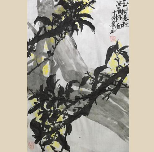 | 缪伟国《玉树悬秋》  阅览量:2275 作者:缪伟国 缪伟国,又名谷唯,1962年出生。曾师从张耕源、蔡衍诸师。 艺术风貌: 遍临明、清诸大师作品,得力于徐渭、虚谷、吴昌硕、潘天寿作品风格。三十多年的书画艺术的探索,形成了清丽、素雅,注重线条和笔墨,书画印三者融合的风格。 艺术职称: 浙江黄宾虹画院画家 杭州市美术家协会会员 杭州西子书画会常务副会长 曾多次参加省、市书画比赛并获奖,作品入选中韩书画展,中国好书画总决赛,中国第十届书画艺术大赛优秀奖。 详细说明