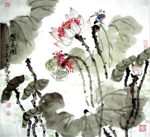 | 李崇庆《盛夏图》  阅览量:2019 作者:李崇庆 ---------------------------------------------------------- 李崇庆艺术简介: ---------------------------------------------------------- 李崇庆 1964年7月出生,山东莱阳人,中共党员,大学文化。 在部队荣立三等功一次,嘉奖八次。十年部队生活造就了他铮铮铁骨,使他对艺术的追求有了一种不屈不挠的精神。现任职于山东省华潍医药公司办公室主任、工会主席、党支副书记 ----------------------------------------------------------- 艺术职称: 世界教科文卫组织艺术委员会执行委员 中国国学研究会荣誉会长 中国当代书画艺术研究会副会长 东方艺术研究院客座教授 中国书画研究委员 山东省青年美术家协会会员 台北故宫画院名誉院长 潍坊市美协、书画研究院、书画联谊会员 当代美术家网推荐国画家 ----------------------------------------------------------- 从艺经历: ----------------------------------------------------------- 多年师承著名金石、书画艺术家陈寿荣先生,陈老在世时多次提拔嘉奖。对他的“鹰”“虾”尤为赞赏。并说“崇庆我年轻的时候还没画出你这个样,你要好好努力,争取将来超过我…”。 后师承当代名家王珂先生(现为首都师范大学教授、硕士生导师),王珂先生曾在课堂上当场画《神仙喝醉酒也是常有的事》相赠。 多年来潜心研究齐白石、王雪涛、刘继卣、李苦禅、郭味蕖、于希宁等大师的作品,从中受益匪浅,现已形成自己的艺术风貌。原武警部队司令员周玉书、政委徐寿增看了他的画大加赞赏分别替下“风华正茂”“艺无止境”八个大字勉励他奋发向上。 ----------------------------------------------------------- 详细说明