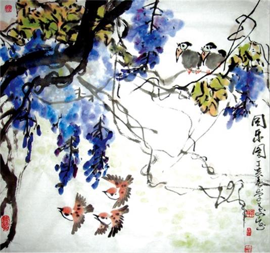 | 李崇庆《同乐图》  阅览量:2376 作者:李崇庆 ---------------------------------------------------------- 李崇庆艺术简介: ---------------------------------------------------------- 李崇庆 1964年7月出生,山东莱阳人,中共党员,大学文化。 在部队荣立三等功一次,嘉奖八次。十年部队生活造就了他铮铮铁骨,使他对艺术的追求有了一种不屈不挠的精神。现任职于山东省华潍医药公司办公室主任、工会主席、党支副书记 ----------------------------------------------------------- 艺术职称: 世界教科文卫组织艺术委员会执行委员 中国国学研究会荣誉会长 中国当代书画艺术研究会副会长 东方艺术研究院客座教授 中国书画研究委员 山东省青年美术家协会会员 台北故宫画院名誉院长 潍坊市美协、书画研究院、书画联谊会员 当代美术家网推荐国画家 ----------------------------------------------------------- 从艺经历: ----------------------------------------------------------- 多年师承著名金石、书画艺术家陈寿荣先生,陈老在世时多次提拔嘉奖。对他的“鹰”“虾”尤为赞赏。并说“崇庆我年轻的时候还没画出你这个样,你要好好努力,争取将来超过我…”。 后师承当代名家王珂先生(现为首都师范大学教授、硕士生导师),王珂先生曾在课堂上当场画《神仙喝醉酒也是常有的事》相赠。 多年来潜心研究齐白石、王雪涛、刘继卣、李苦禅、郭味蕖、于希宁等大师的作品,从中受益匪浅,现已形成自己的艺术风貌。原武警部队司令员周玉书、政委徐寿增看了他的画大加赞赏分别替下“风华正茂”“艺无止境”八个大字勉励他奋发向上。 ----------------------------------------------------------- 详细说明