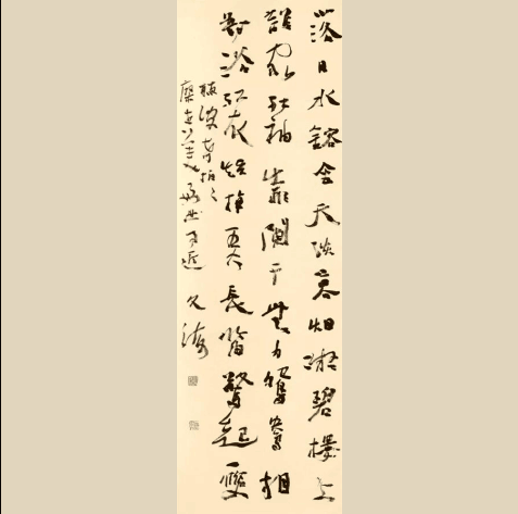 | 刘文海  宋·廖世美《好事近·夕景》  阅览量:2675 作者:刘文海 刘文海,别署抚琴斋主,山东德州人(原籍乐陵)。幼从叶效原先生习书,后进修于南京艺术学院,师从徐利明先生。首都师范大学书法文化研究院艺术硕士,师从王元军先生。曾问教于刘正成、于明诠、吴振立、徐本一、黄惇诸先生。 艺术职称: 现为中国书法家协会会员 山东省书法家协会第四届理事、草书委员会副秘书长 九三学社中央书画院成员 德州学院、齐鲁师范学院教授、硕士生导师 详细说明