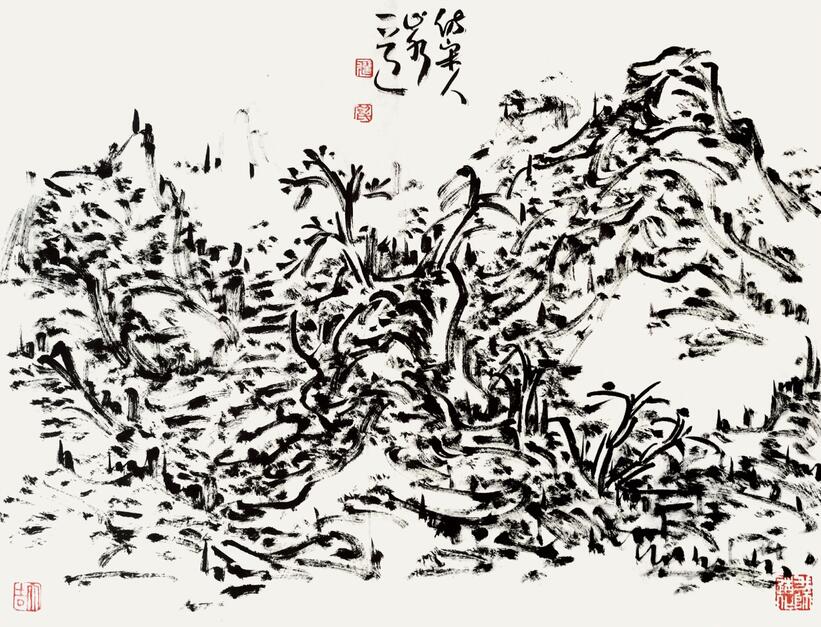 初中海焦墨山水《仿宋人山水》