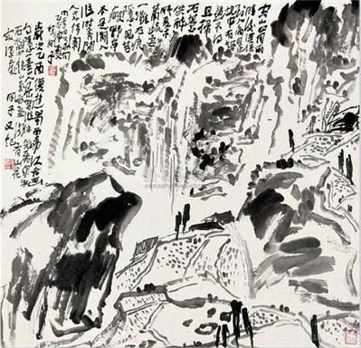 | 程风子《禅意山水》  68X68cm  阅览量:7856 作者:程风子专栏 程风子:原名程春风,斋号闻梅堂,玄壶居。1964年生,安徽阜南人。斋号问梅堂、玄壶居、丹若居,别署狂花居士。 师承国画大师黄永厚、杨延文,国画大师黄永玉御用篆刻师。出版发行《程风子篆刻集》、《性灵风骨---程风子》、《中华书画》(程风子专辑)、《中国名画家精品集(写意山水)程风子》、《当代逸品十佳--程风子》、《当代书法家--程风子》、《程风子--性灵风骨》、《有名其灿--(程风子玩书画印)》等。 北京国家博物院文物鉴定中心书画鉴定组专家成员 北京印社理事 北京大学名家班程风子工作室导师 中国人民大学艺术学院程风子工作室导师 当代美术家网合作艺术家 ------------------------------------------- 中央电视台、湖南卫视、山东卫视、环球旅游、书画数字频道以及内蒙古卫视先后作专题报道。他酷爱声乐艺术,曾拜师歌剧表演艺术家、歌唱家柳石明学习声乐。中国唱片深圳公司曾为其出版《山中问茶---柳石明程风子师生歌曲集》《青山有约--程风子歌曲集》两套唱片。 作品特点: 擅长中国画、书法、篆刻,国画以山水见长,取法蒲华、石涛、黄宾虹等,后深造于北京画院,师从我国著名山水画家杨延文先生,受益良多。作品率意洒脱,妙趣横生。书法初习苏东坡、黄庭坚墨迹、汉魏碑刻、近年于徐生翁书法、敦煌遗画用功最勤,篆刻多取法陶文、汉将军章。书法生拙朴厚,不拘成法,其印更是用刀恣奔放。时出险绝,颇为大气。 ------------------------------------------- 艺术成就: 1991年:国画入选中国画研究院主办的《91中国花鸟画邀请展》 1993年:入选《全国第五届中青年书法篆刻家作品展》 1994年:入选《全国第三届篆刻艺术展》,入选《第一届全国文联书法大展》 1995年:入选《全国第六届中青年书法家篆刻家作品展》、《首届国际篆刻艺术交流展》、《全国第六届书法篆刻展》 1996年:入选《中国画名家新作展》、《中日篆刻艺术交流展》 1997年:入选《第二届国际篆刻交流展》、《第四届全国篆刻艺术展》。书法荣获由文化部艺术局、中国艺术研究院、中国美术家协会、中国书法家协会联全主办的首届《世界华人书画展》银获 1999年:入选《北京画院建院四十周年画展》 2000年:作品参展《全国第八届中青年书法篆刻家作品展》 2002年:作品入展《首届流行书风提名展》。曾获世界华人书画展书法银奖。 详细说明