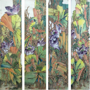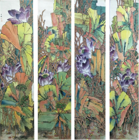 | 王士彬《重彩荷》四条屏  阅览量:3261 作者:王士彬 王士彬,号清墨斋斋主,1973年出生于山东泰安,毕业于泰山学院美术系,深造于清华大学美术学院首届周逢俊诗境山水研究生班。 清华美院导师周逢俊工作室专职画家。师从徐悲鸿夫人廖静文、人民大学徐悲鸿艺术学院院长徐庆平。中美协会员鉴长春老师。 艺术职称: 现为山东美术家协会会员 山东青年书法家协会会员 九三学社社员、专职画家 中国国艺书画研究院国画院特聘画家 泰安岱岳区美术家协会副主席 山东未名社副社长 山东天昌书画院副院长 东源书画院院士 详细说明