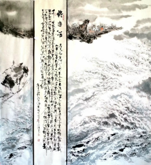 | 张弓 金利《将进酒》  阅览量:2887 作者:张弓 金利 张弓, 原名金利。毕业于天津艺术学院,师承范曾先生.精人物、山水、花鸟、书法,被誉为全才艺术家 吉林省书法家协会会员 吉林省美术家协会会员 中国华夏万里行书画家协会会员 北京宣和书画艺术研究院会员 北京典藏画苑文化传播股份有限公司签约画家、理事 1990年受邀参加北京个人画展,“风雨同舟 · 抗震救灾”美展,作品全部捐出,《祝君万里行》荣获银奖,幷获“优秀青年画家”称号;年度中国好品牌影响力画家。作品多次参加国内外大型美展 入典、获奖。 详细说明