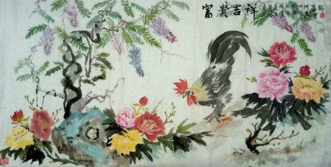 | 马连祺《富贵吉祥》  阅览量:2170 作者:马连祺 马连祺,名文轩、号南云山樵,河北省沧州市南门里葡萄湾《墨宝轩》草舍,1992年毕业于中国书画函授大学。启蒙著名画家尹德年老师、后受教于米春茂老师。 中国工笔画家协会会员、中国国家书画院会员、北京当代书画院院士副院长、北京当代环球书画院艺术顾问、北京人民画院院士、中国国画创作研究院研究员、沧州市美术家协会会员 1979年首次入选沧州市共青团主办的迎春书画展览受到观众的好评;1983年入选了沧州市宣传部主办的迎春书画展;1984年入选了河北省机械厅电子系、诗、书、画、摄影展览;1987年入选了全国《峨眉山杯》迎春书画展中荣获人物优秀奖;2000年入选了沧州市美术家协会暨沧州画院主办的跨世纪国画作品展览荣获优秀奖;2008年北京奥运全国中老年书画家收藏达到入选要求评定为金奖、入编大型画册《2008北京奥运书画拍卖作品专辑》珍藏版;2009年入选北京艺之瑰宝书画作品,在当代中老年画家优秀作品赴东南亚及欧洲各国交流巡展拍卖活动中荣获金奖、入编大型画册《当代书画家优秀作品中外交流拍卖巡展精品典藏》一书。入编《新中国美术图鉴》、入编《世界美术家大词典》特授予《中国知名书画家》荣誉称号。 详细说明