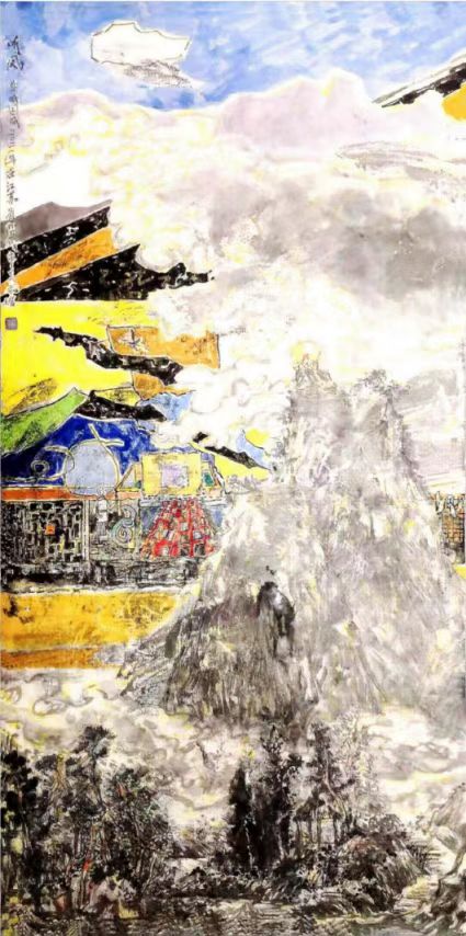 余国城《听风》 2021年 139cm200cm 纸本设色 |