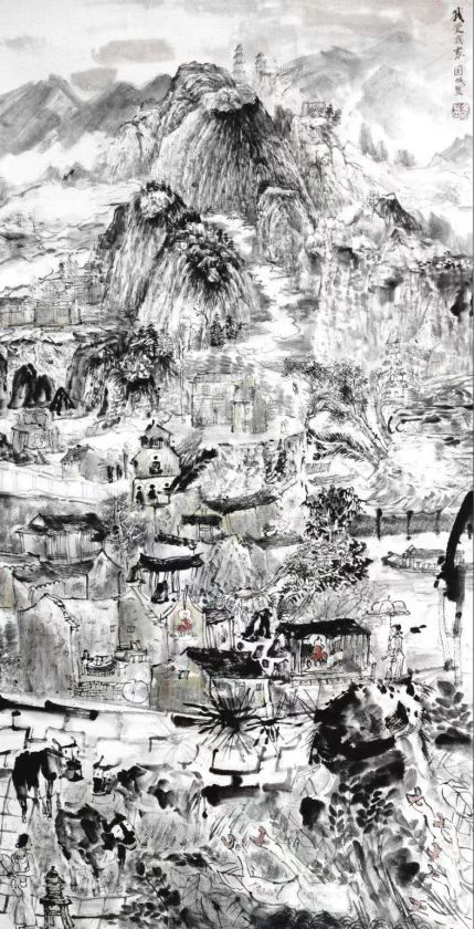 余国城《我爱我家》139cmX200cm 纸本设色 2016年 |