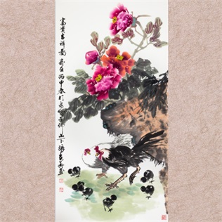 | 张克华《富贵吉祥图》  阅览量:2261 作者:张克华专栏 张克华艺术简介 张克华(笔名:青山墨人),1961年出生于山东新泰,毕业于山大研究生院,空军大校。 艺术职称: 现为中国国际艺术家学会副主席 中国书画协会副主席 中国美术家协会会员 中国书法家协会会员 中国收藏家协会会员 中国国画家协会理事 解放军美术书法研究院空军创作员 山东省美术家协会理事 山东省书法家协会理事 山东省文联委员 济南市书法家协会副主席 济南市奇石协会副会长 中华东岳书画院院长 当代美术家网推荐国画家 艺术简介与成就: 自幼酷爱书画艺术,1979年12月携笔保从戎,从事书画创作30余年,苦苦追求艺术真谛,善集众家之长,注重吸取清代书画大师赵之迁、任伯年、吴昌硕和当代书画大师王雪涛等艺术之精华,师古人而不为其所囿,师今人而不拘一家,书画作品逐渐形成自己的风格。其书画作品曾多次参加军地举办的大型展览并多次获奖。先后在《解放军报》、《解放军画报》、《解放军生活》《空军报》、《前卫报》、《解放日报》、科技日报》、《生活日报》、《艺术中国报》、《诗书画报》、《中国书画界》、《羲之书画报》、《艺术中国报》、《诗书画报》等新闻媒体作了专题报道。其书画传略被辑入《世界书画家大辞典》、《中国艺术界名人录》、《国际现代书画篆刻家大辞典》、《中国书法家精品选集》、《新世纪书画家辞典》、《中国风·杰出人物特集》、《庆六十周年当代名家经典》、《当代名家书画作品集》、《山东书法家》等30余部大型辞书。2004年被中国国画家协会授予“2004年中国书画百杰”。2007年3月被中国国学研究会授予“国学家”荣誉称号。被中国时代人物评选委员会评为2007年度“中国时代人物”。2007年12月获中国文艺金像奖,并被中国书画名家研究会授予六十位“当代艺术名家”荣誉称号。2008年荣获“国际艺术创作成果奖”金奖,被中国国际书法家联合会,中国书画家创作协会授予“国际杰出创作艺术家”称号。被国际中华艺术家协会,中国书画艺术家协会联合授予“和谐门第,文化世家”荣誉称号。在人民大会堂光荣的出席2009中国文化艺术突出贡献人物新年座谈会。2009年12月被评为中国山东省籍21世纪最具收藏价值100名书画名家;2010年1月被中国文联出版社评为当代最具投资潜力的书画名家;2010年12月组织成立中华东岳书画院并担任院长;2011年 7月被评为最具诚信与社会影响力的山东当代中国书法十大名家;2012年1月被评为最具收藏价值与升值潜力的中国画花鸟百家。2012年6月江苏美术出版社出版国画三名家《刘大为、贾又福、张克华作品集》。2013年8月被评为最具收藏价值与升值潜力中国画花鸟36家。 详细说明