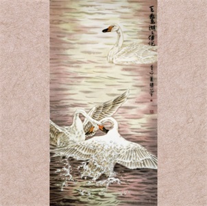 王胜华《天鹅湖传说》 136X68cm |
