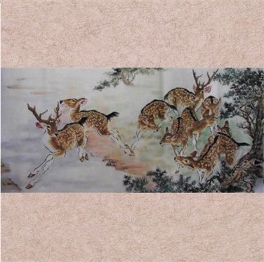 李光新《八鹿图》 136X68cm |