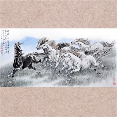 乐毅画马《奔腾千里》 68X139cm |