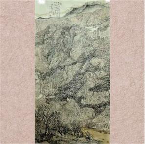 陶古《焦墨山水》 136X68cm |