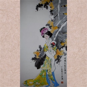 朱春湖《云想衣裳花想容》 100X55cm |