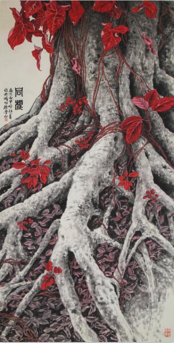 | 徐鲁白《同根》  阅览量:2912 作者:徐鲁白专栏 徐鲁白,字雪峰,号艺枫馆主,1957年生于潍坊。 艺术简介 自幼随家父徐艺秋先生(潍坊工艺美术学校创始人之一)习画,得到家父与其老同事潍坊著名画家徐培基、郭兰村等诸老先生的关怀、培养和指点。 1981年毕业于昌潍教育学院美术系,师从杨元武 、冀学闻等老师。 2015年结业于清华美院绘画理论与创作高研班,师从程大利、郭石夫等诸师。 艺术职称 现为潍坊学院美术学院客座教授 国家一级工艺美术师 中国工艺美术学会会员 文化部中国水墨研究院院士 北京郭石夫写意花鸟画工作室画家 郭石夫画友会会员 山东省美术家协会会员 浙商画院签约画家 当代美术家网推荐国画家 2017年被当代美术家网评委中国画都(潍坊)花鸟代表画家