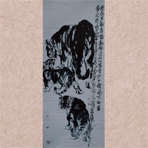 | 刘化雨《虎为百兽尊》  阅览量:4876 作者:刘化雨专栏 刘化雨,1954年生于济南。字博虎,号山君牧人、 南华居士,法名缘法, 虎缘斋、博虎堂主人。中国虎缘斋书画研究院院长。当代美术家网推荐国画家 ----------------------------------------------------------- 艺术简介 ----------------------------------------------------------- 自幼酷爱艺术,10岁参展,後幸得慕凌飞先生亲教,得 “大凰堂”真传,研究画虎艺术及虎文化。自八十年代初以来创作了数十幅“百虎固”、“百虎头”系列通屏,并以超写实,半工半写、水墨大写意的艺术表现手法创作了一批巨幅系列,山君头部肖像系列,以虎抒怀、以虎言志、以其史无前例的视觉感受和衙擎力,震撼力表达了封虎的深刻理解,开拓了前所未有的艺术效果,用艺术的语言展示了虎在大自然中的千姿百态,形成了自己独特的绘画风格和艺术语言,这在历次画展中得到充分印证。 ------------------------------------------------------------ 艺术成就 ------------------------------------------------------------ 八十年代以来在“中华百绝博览会,中国美术馆,山东美术馆,深圳博物馆,菲律宾首都马尼拉,济南荣宝斋”等地数次举办个人“百虎”画展(展出了百虎长卷和巨幅虎头系列的作品)。1998年中央电视台“虎年谈虎画虎”节目中被采访。在人民日报,人民日报海外版,光明日报,济南日报,世界日报,大公报,山东电视台,济南电视台等数十家国内外媒体以“神州虎王”为题介绍了历次“百虎”画展,在联合日报,羲之书画报发表遇“谈虎”一文。作品入选《历代名家书画辞海》、《世界名人录》等。作品“百虎图”在国际国内书画大赛中多次荣获“一等奖、特等奖、国际银奖、特别金奖”。在新华网,华夏艺术网,优酷网都有作品展示。2015年“走进美国——中国‘虎王’刘化雨洛杉矶画展”在美国引起巨大反响。 ------------------------------------------------------------