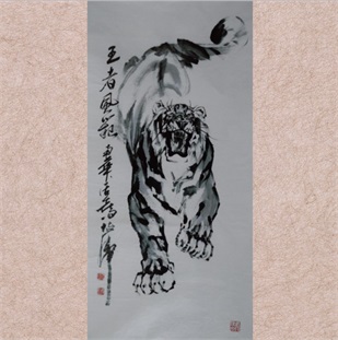 | 刘化雨《王者风范》  阅览量:2345 作者:刘化雨专栏 刘化雨,1954年生于济南。字博虎,号山君牧人、 南华居士,法名缘法, 虎缘斋、博虎堂主人。中国虎缘斋书画研究院院长。当代美术家网推荐国画家 ----------------------------------------------------------- 艺术简介 ----------------------------------------------------------- 自幼酷爱艺术,10岁参展,後幸得慕凌飞先生亲教,得 “大凰堂”真传,研究画虎艺术及虎文化。自八十年代初以来创作了数十幅“百虎固”、“百虎头”系列通屏,并以超写实,半工半写、水墨大写意的艺术表现手法创作了一批巨幅系列,山君头部肖像系列,以虎抒怀、以虎言志、以其史无前例的视觉感受和衙擎力,震撼力表达了封虎的深刻理解,开拓了前所未有的艺术效果,用艺术的语言展示了虎在大自然中的千姿百态,形成了自己独特的绘画风格和艺术语言,这在历次画展中得到充分印证。 ------------------------------------------------------------ 艺术成就 ------------------------------------------------------------ 八十年代以来在“中华百绝博览会,中国美术馆,山东美术馆,深圳博物馆,菲律宾首都马尼拉,济南荣宝斋”等地数次举办个人“百虎”画展(展出了百虎长卷和巨幅虎头系列的作品)。1998年中央电视台“虎年谈虎画虎”节目中被采访。在人民日报,人民日报海外版,光明日报,济南日报,世界日报,大公报,山东电视台,济南电视台等数十家国内外媒体以“神州虎王”为题介绍了历次“百虎”画展,在联合日报,羲之书画报发表遇“谈虎”一文。作品入选《历代名家书画辞海》、《世界名人录》等。作品“百虎图”在国际国内书画大赛中多次荣获“一等奖、特等奖、国际银奖、特别金奖”。在新华网,华夏艺术网,优酷网都有作品展示。2015年“走进美国——中国‘虎王’刘化雨洛杉矶画展”在美国引起巨大反响。 ------------------------------------------------------------