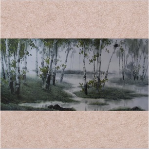 孙文松《白杨山水》 68X136cm |